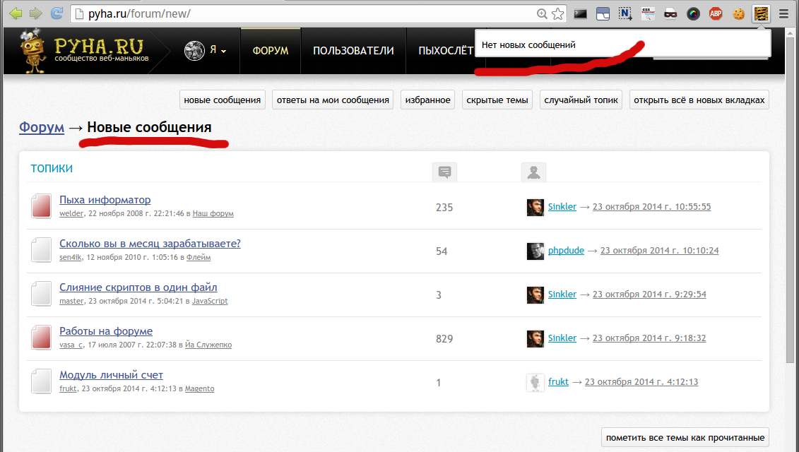 Чет он у меня не работает, пишет все время "Нет новых сообщений", хотя сейчас их штук 5 есть...