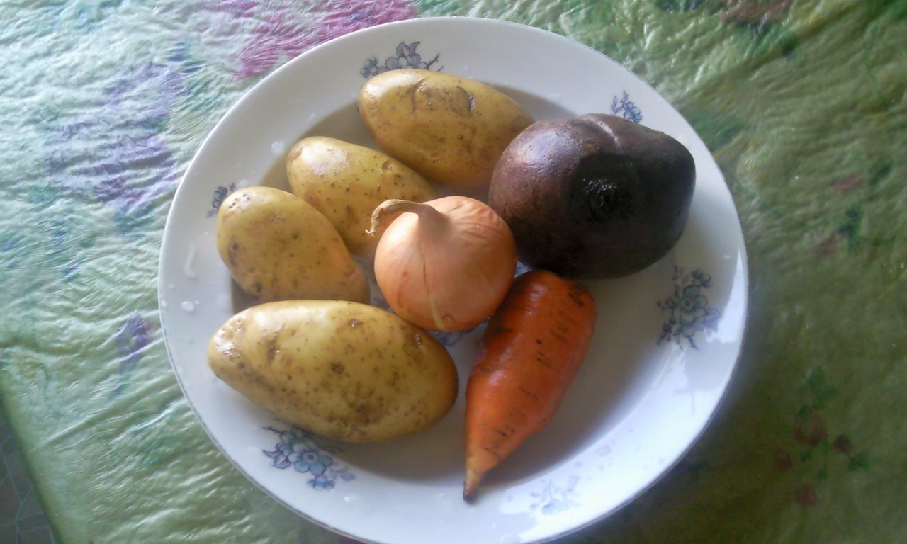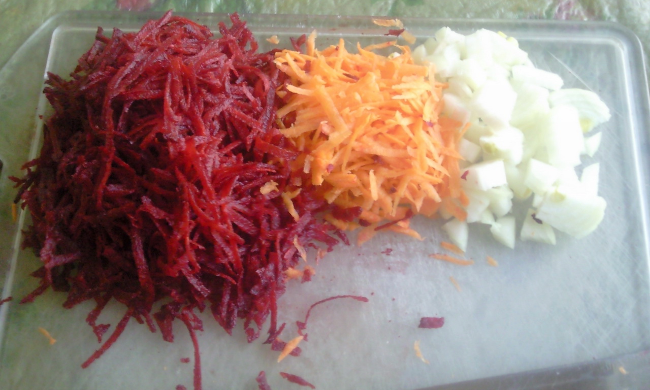 сметана, яйца, хлебПодготовка овощей. Моем, чистим. Режем или трем на крупной на терке морковку со свеклой. Я выбрал второй вариант, так как руки из жопы и ножи все тупые. Картошку режем средними кубиками.