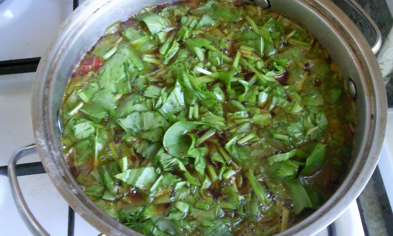 Всю неделю я собирался сварить щавельный борщ. Вот, сегодня отправился на рынок, купил 2 здоровых пучка щавля и понеслась.