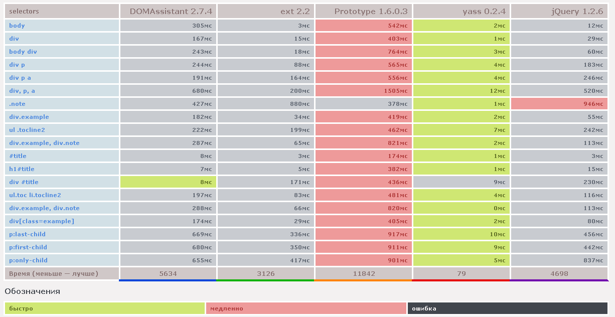 Форум → Программирование → JavaScript → Javascript библиотеки (сравниваем скорость работы)