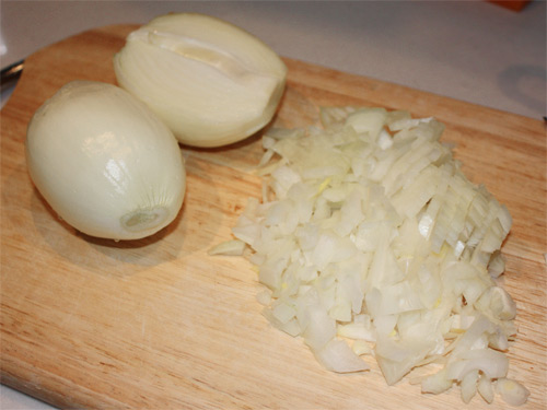 Две крупные луковицы, мелко режем: